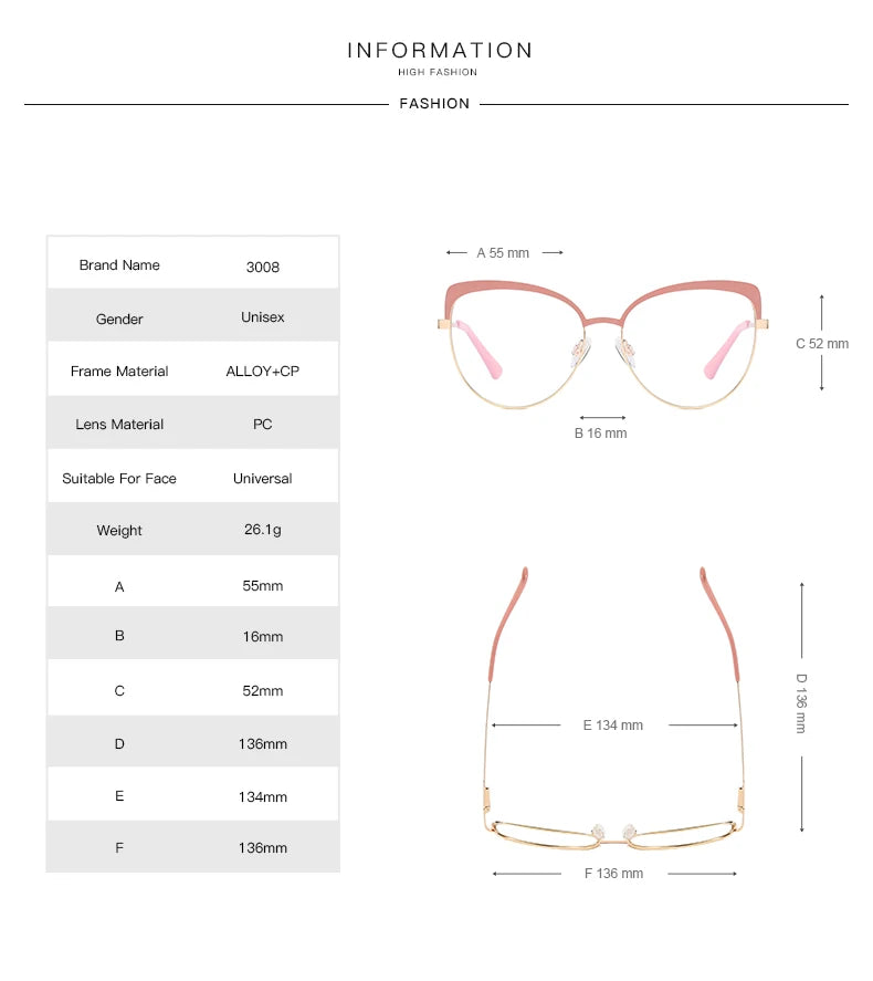صُممت هذه النظارات العصرية ذات تصميم عين القطة لتناسب الاستخدام اليومي الأنيق، وتتميز بإطار معدني عالي الجودة وعدسات طبية متغيرة اللون. تتكيف هذه العدسات بسلاسة مع تغيرات الإضاءة، مما يوفر رؤية واضحة ومظهرًا عصريًا راقيًا.